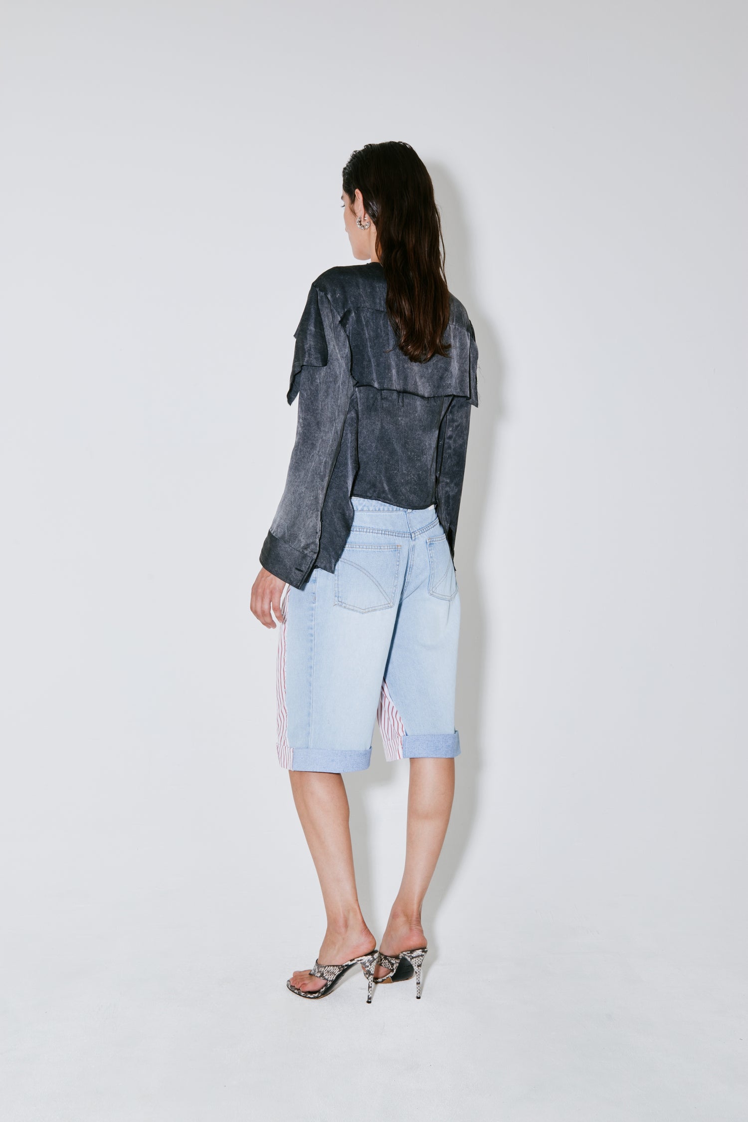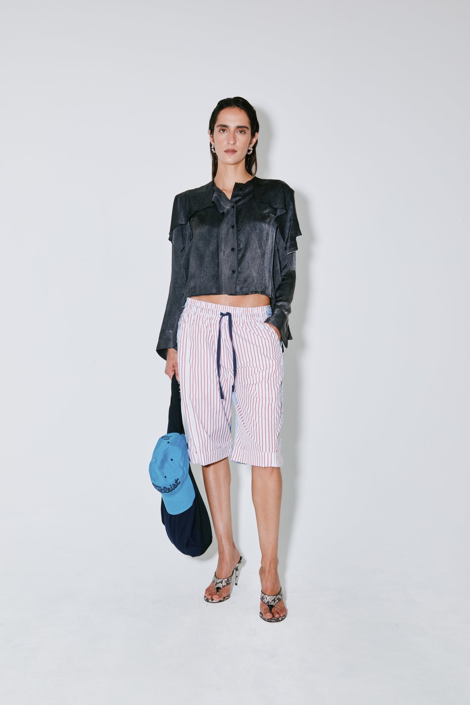 CONNER is a shirt crafted from Italian viscose. Features extra fabric panels for sculptural volume. Designed with experimental tailoring. Cut to a relaxed silhouette.