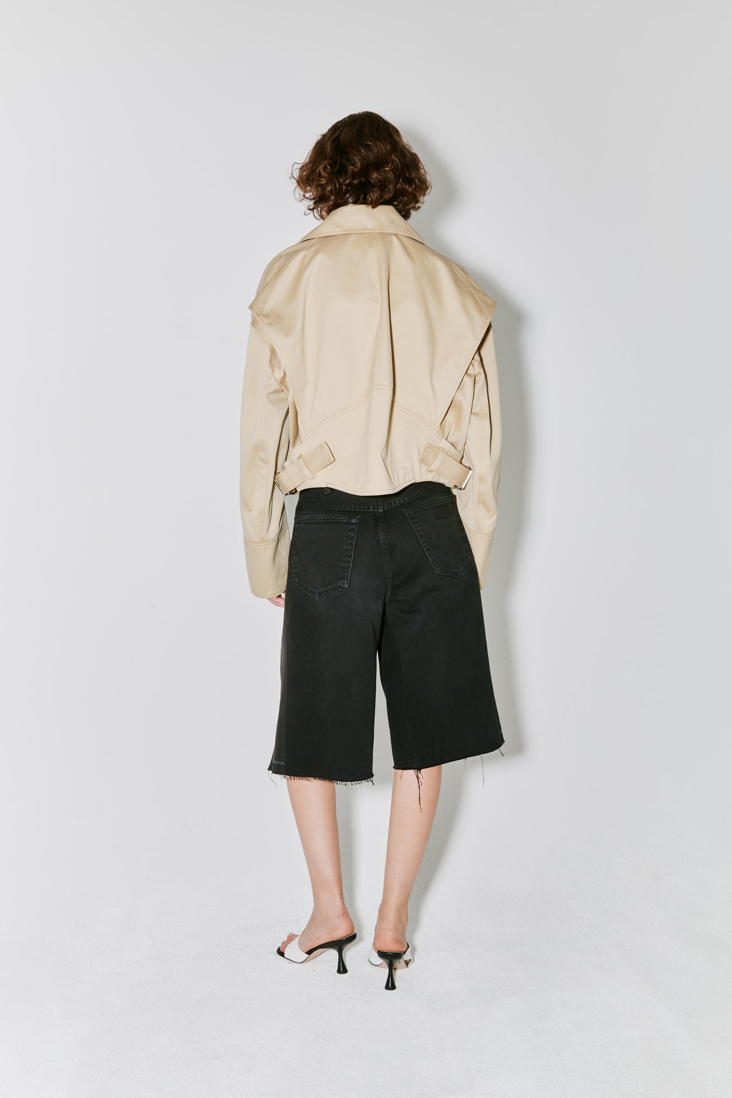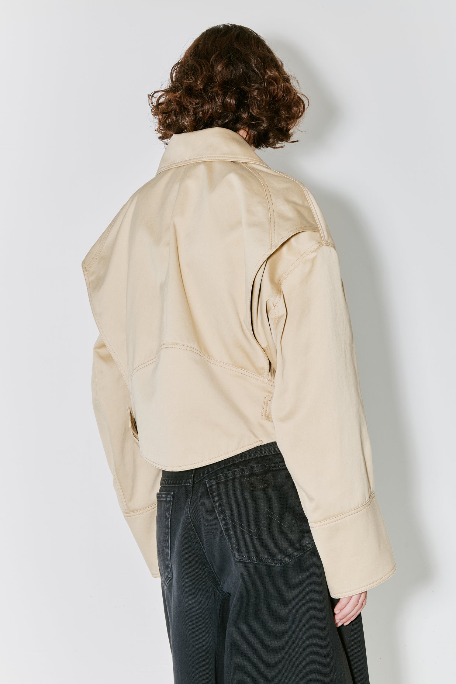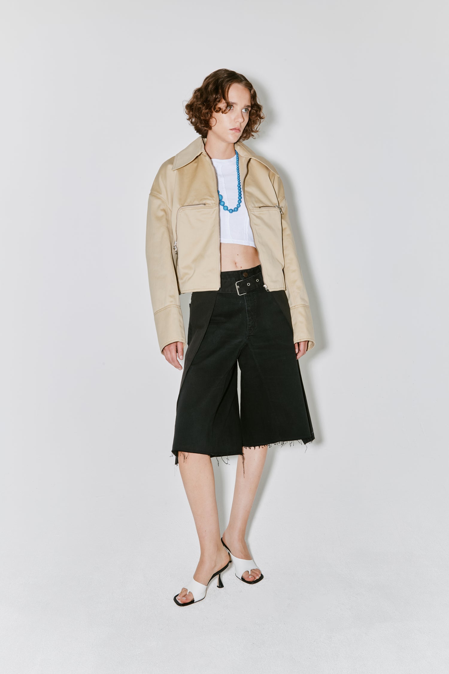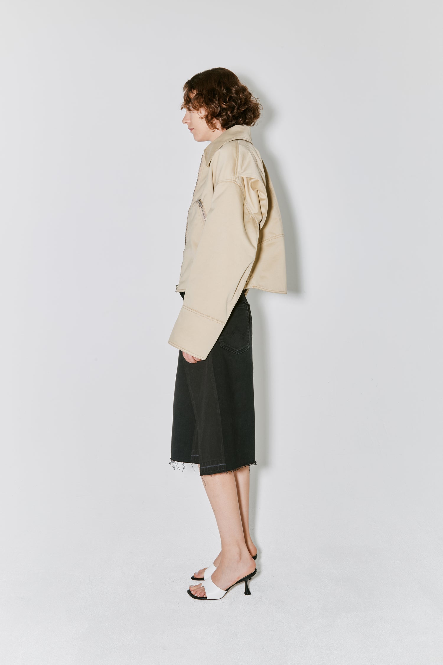 MARTY is the iconic boxy jacket made with Italian beige gabardine cotton. Features a relaxed fit, complete with external double slider zip pockets with a sleek zipper closure.